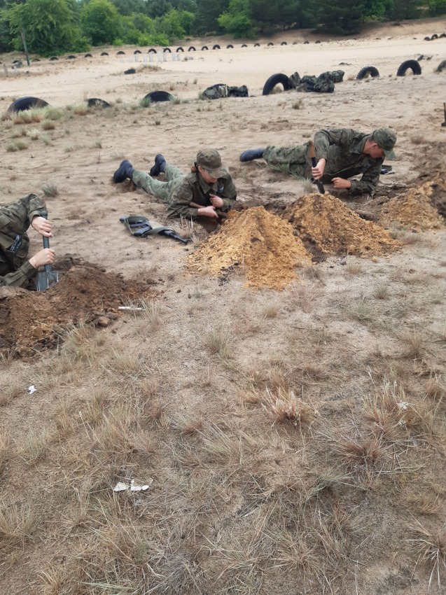 W dniach 22-13.06 klasa mundurowa odbyła ostatnie zajęcia poligonowe -podsumowujące I klasę. W pierwszym dniu zajęcia odbyły się na terenie CSAiU -łączność, szkolenie chemiczne, oraz szkolenie ogniowe na strzelnicy Śnieżnik, oraz bez udziału wojska - ulewa która tylko podniosła uczniowskie wrażenia po wspaniałych - kształcących zajęcia. W drugim dniu jak przystało na klasę mundurową -zajęcia na poligonie -szkolenie inż-sap kopanie okopów, działanie w patrolu, określanie azymutów oraz obserwacja strzelań bojowych z haubicy 122mm -Goździk wraz z obserwacją upadku ze wzgórza Czarnecki. Teraz to tylko wakacje.