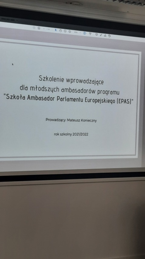 21.03.2022 w Poznaniu odbyło się szkolenie dla Młodszych Ambasadorów programu EPAS realizowanego w naszej szkole. Trzej uczniowie naszego liceum Wiktoria Lewandowska (IA), Oliwia Stachulak (IA) oraz Oliwier Majewski (IIA) mieli okazję wdrożyć się w szczegóły założeń programu, zdobyć inspiracje i pomysły do dalszych działań w ramach programu EPAS, a także zdobyć solidną wiedzę o UE i PE .