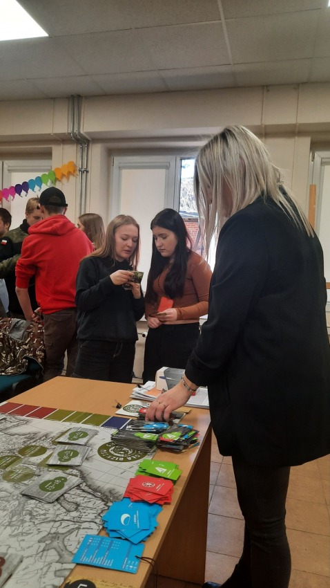 Finałem naszej wizyty była wspólna gra "Chłopska szkoła biznesu", która nie tylko doskonale uczy przedsiębiorczości, ale też bawi, uczy i integruje. Z powodzeniem może być stosowana na lekcjach wychowawczych, podstaw przedsiębiorczości oraz doradztwa zawodowego. Uczniowie 2a doskonale się bawili i uczyli strategii marketingowych.