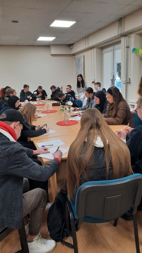 Następnie uczniowie wypełniali test predyspozycji zawodowych, który został omówiony przez doradcę zawodowego z OHP.
