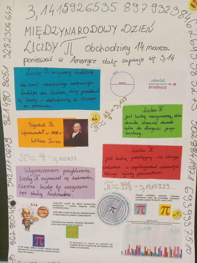 W naszej szkole uczniowie mogli wziąć udział w różnych aktywnościach: nagrać film o liczbie Pi, podejść do konkursu „Matematyka dla ambitnych” oraz podjąć się przygotowania słodkości związanych z liczbą π.