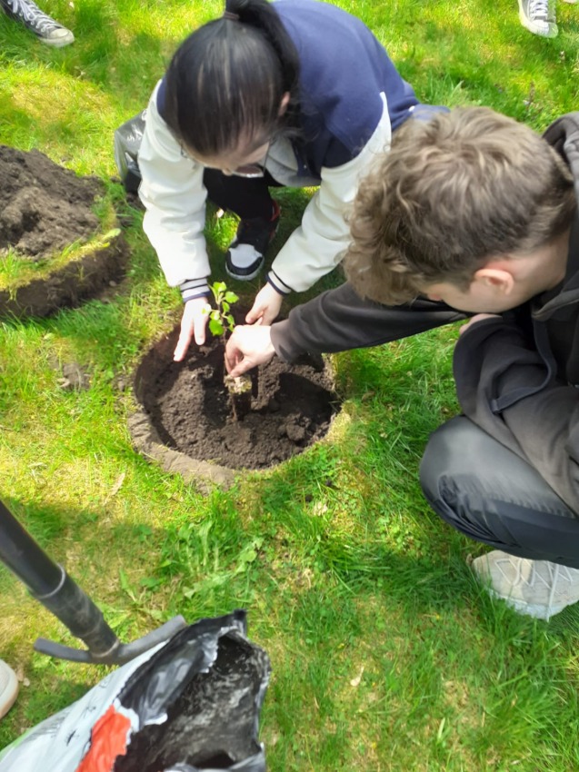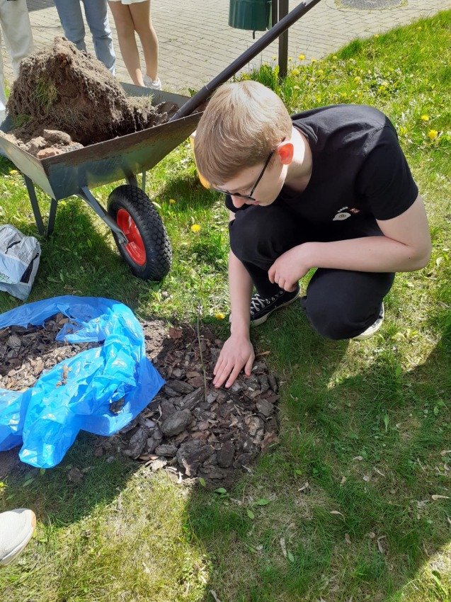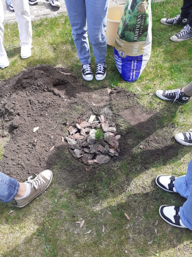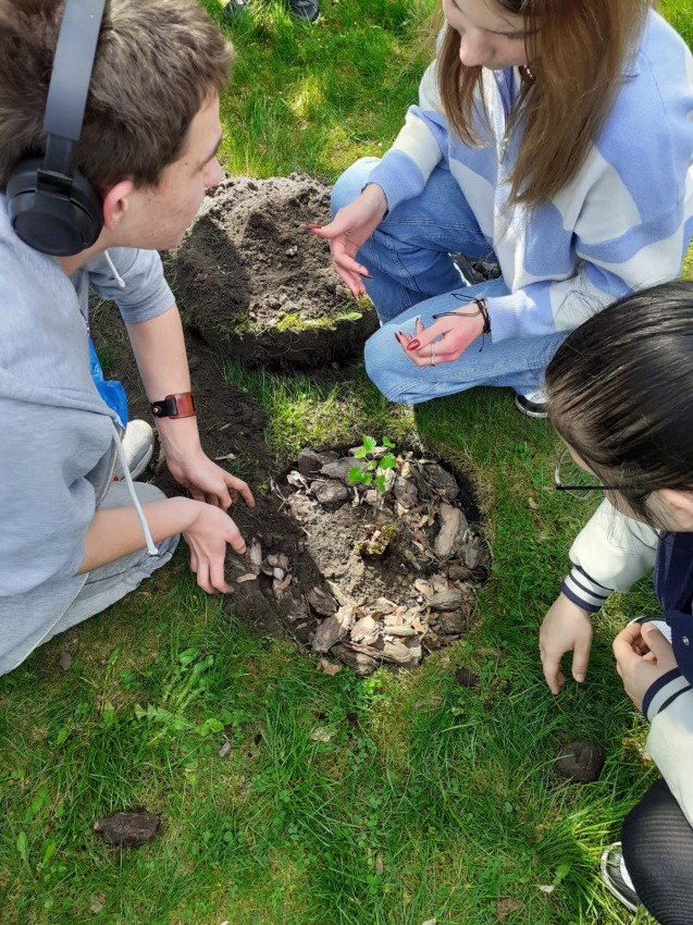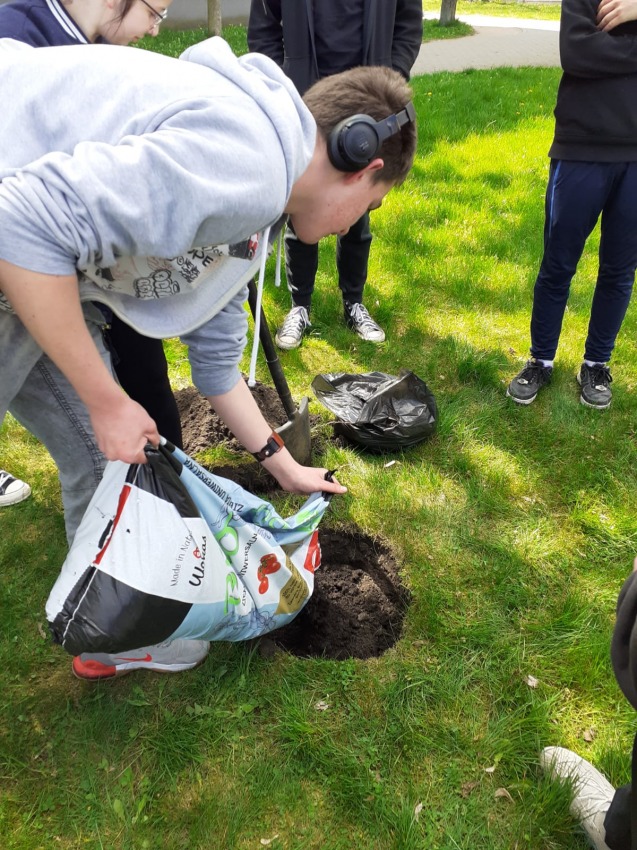 W piątek 28. kwietnia 2023 roku, uczniowie wraz z wychowawcą, Agatą Białuchą, wzięli udział w akcji pt. "Posadź drzewo dla przyszłych pokoleń".