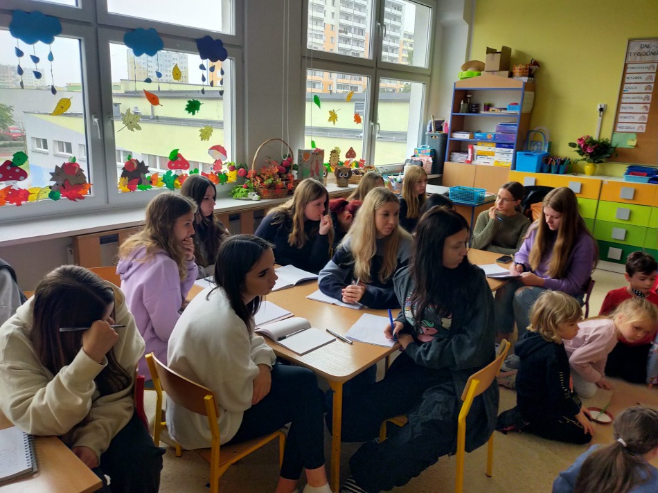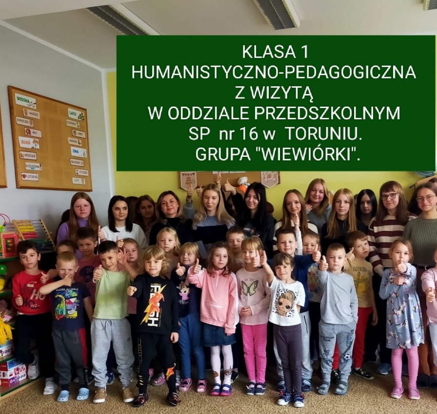 Najlepszym rodzajem nauki jest wykorzystanie zdobytej wiedzy teoretycznej w praktyce. Taką możliwość mają uczniowie klasy humanistyczno-pedagogicznej. Młodzież dzięki podjętej współpracy Dyrektora VI LO Zbigniewa Matuszewicza i nauczyciela podstaw pedagogiki Anny Lis, z Dyrekcją SP Nr 16 w Toruniu, uczestniczy w zajęciach odbywających się w Oddziałach Przedszkolnych. 19.10.2023 r. uczennice klasy 1 gościły w grupie "Wiewiórki". Temat zajęć: Jesienny krajobraz. Była pogadanka utrwalająca zakres wiadomości dotyczących tej pory roku i praca plastyczna. Efekty można podziwiać oglądając fotorelację z zajęć. Zajęcia poprowadziła Pani Sylwia Filarska. Jesteśmy bardzo wdzięczni za możliwość obserwacji i pomoc w rozwijaniu naszych zainteresowań.
