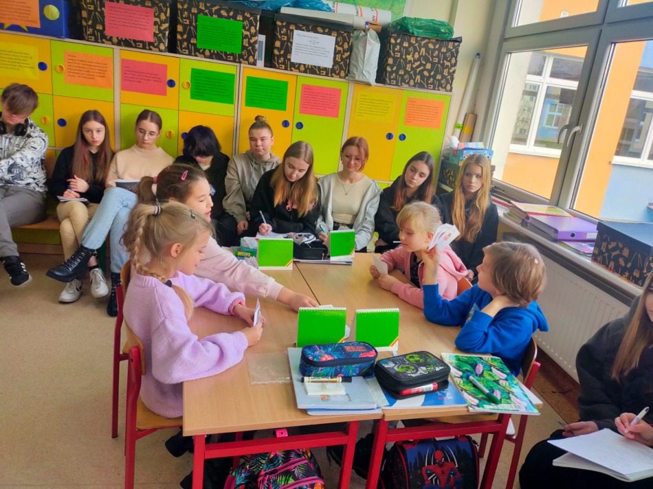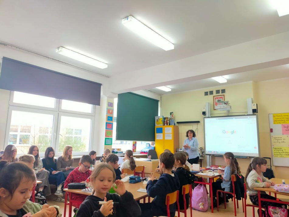Wizyta klasy humanistyczno-pedagogicznej w Szkole Podstawowej nr 16 w Toruniu - obserwacja zajęć prowadzonych w II C.