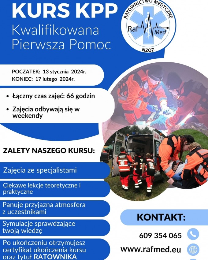 2023-12-10KURS KPPWszystkich zainteresowanych bardzo serdecznie zapraszamy do zapisów na kurs kwalifikowanej pierwszej pomocy.
