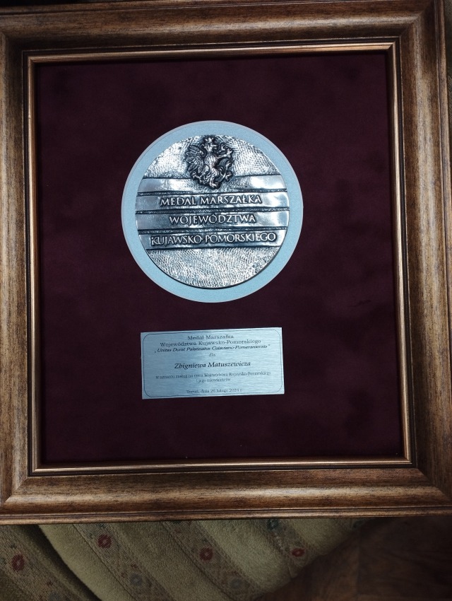 Ogromne wyróżnienie stało się udziałem Pana Dyrektora Zbigniewa Matuszewicza. Za szczególne zasługi w szerzeniu pamięci o przeszłości i wspieranie Sybiraków został odznaczony Medalem Marszałka Województwa ‘’Unitas Durat Palatinatus Cuiaviano- Pomeraniensis’’. Jest to najwyższe odznaczenie, jakie może przyznać marszałek. Gratulujemy!
