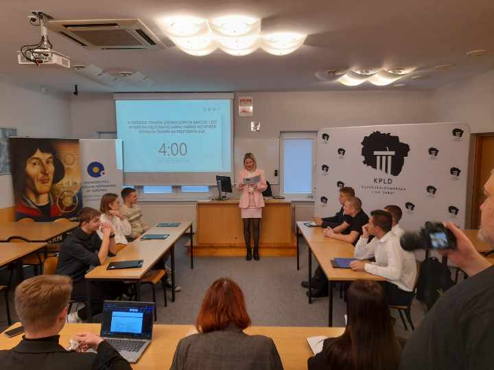 W tym roku również nasza szkoła zgłosiła się do udziału w tym projekcie. Dwie drużyny w składzie: Mateusz Hyrnik, Marcin Szlejer, Agata Zalewska, Maciej Leźnicki, Magdalena Jurkiewicz, Oliwia Stodulska, Tamara Ottenbreit, Maciej Chmura (z klas IVB i IIIB) pod okiem trenera z fundacji zapoznawały się z formą dyskutowania, jaką jest debata oksfordzka. Następnie podczas spotkań warsztatowych opracowywaliśmy argumenty do pierwszej debaty, której teza brzmiała: „W interesie Stanów Zjednoczonych bardziej leży wybór na prezydentkę Kamali Harris niż wybór Donalda Trumpa na prezydenta USA”. W fazie grupowej Toruńsko-Inowrocławskiej Ligi Debat bierze udział dziesięć szkół (dziewięć z Torunia i jedna z Inowrocławia). Listopadowa tura debat odbyła się na Wydziale Nauk o Polityce i Bezpieczeństwie UMK. Przed nami jeszcze dwie rundy fazy grupowej - w grudniu i w styczniu, a wyniki poszczególnych debat można śledzić na stronie KPLD: https://www.facebook.com/KujawskoPomorskaLigaDebat/?locale=pl_PL .
