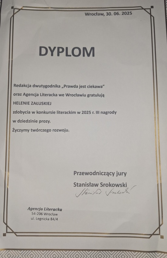 Uczennica klasy IV D Helena Załuska zdobyła III miejsce w ogólnopolskim konkursie literackim dwutygodnika „Prawda jest ciekawa” w kategorii „Proza”.