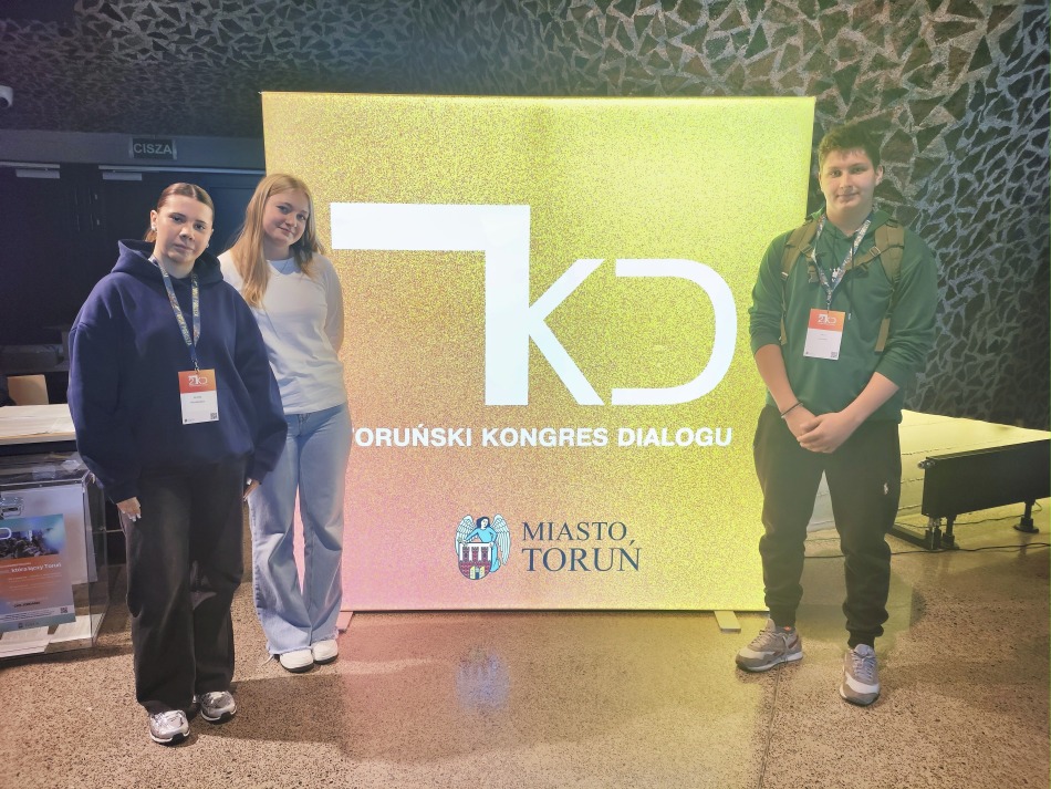 W dniach 29–30 września nasi uczniowie – Amelia Kozakiewicz i Amelia Zygarska z kl. 3c oraz Jakub Zalewski z kl. 4a – wzięli udział w 2. Toruńskim Kongresie Dialogu. Była to świetna okazja, żeby spotkać ciekawych ludzi, posłuchać inspirujących wystąpień i porozmawiać o tym, jak ważny jest dialog we współczesnym świecie.