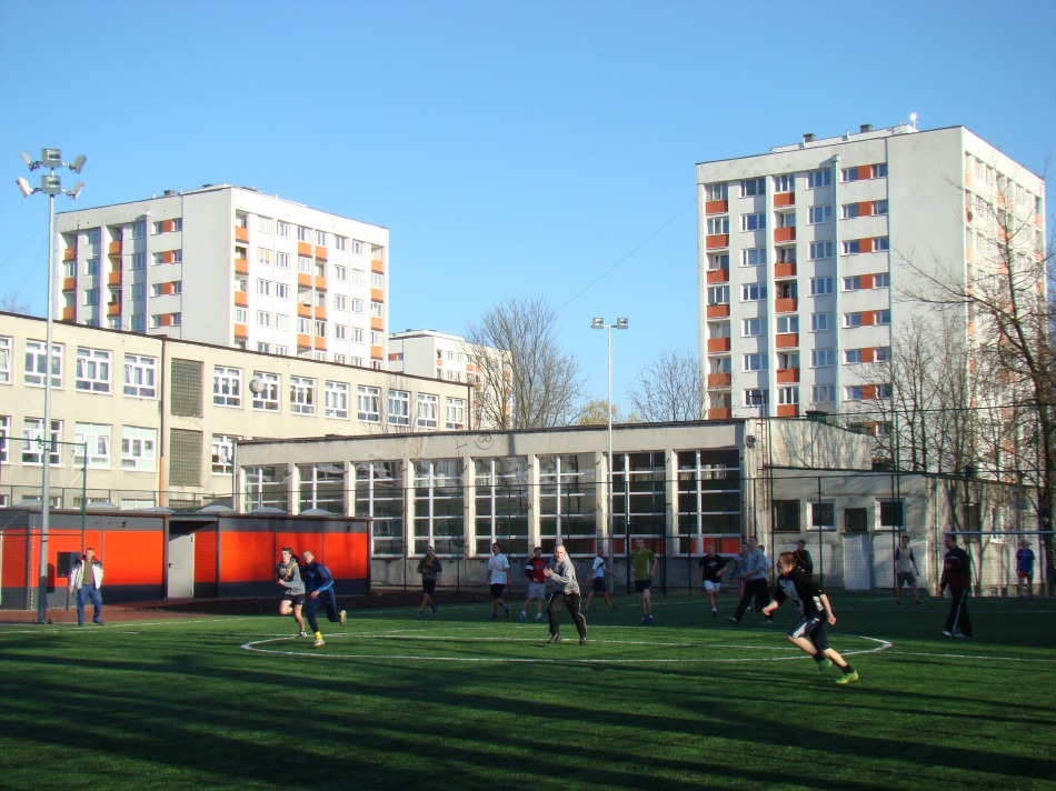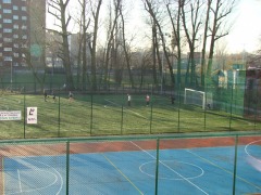 - boisko piłkarskie o wymiarach 30m x 62m (pole gry 26m x 56m), ogrodzone po obwodzie ogrodzeniem o wysokości min. 4 m z siatki stalowej powlekanej Nawierzchnia boiska wykonana jest na podbudowie dynamicznej- trawa syntetyczna o wysokości minimum 40 mm.