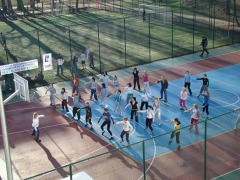 - boisko wielofunkcyjne do koszykówki i piłki siatkowej o wymiarach 19,1m x 32,1m, ogrodzone po obwodzie ogrodzeniem o wysokości min. 4 m, z siatki stalowej powlekanej Nawierzchnia boiska - poliuretanowa, przeznaczona do boisk wielofunkcyjnych, wykonana na podbudowie dynamicznej